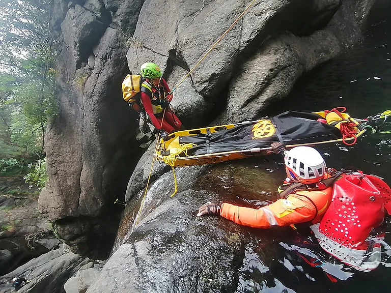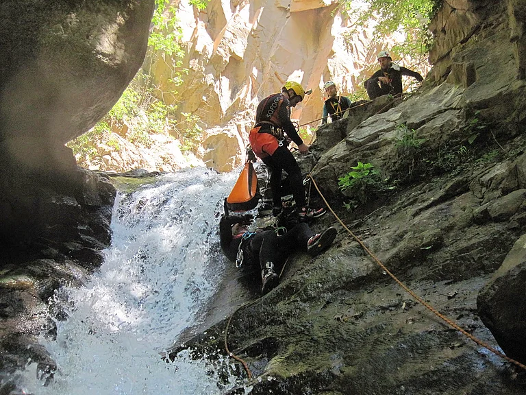 Per questo tipo molto speciale di interventi il CNSAS dispone di un Gruppo Canyoning.
